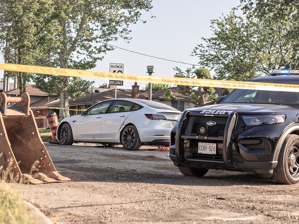 Man injured in interaction with Brantford Police May 30, 2023 by Sarnia_Man Brantford Police hold a scene at Tollgate Road and St. George Street for the arrival of SIU. A white Tesla appears to have 3 bullet holes.